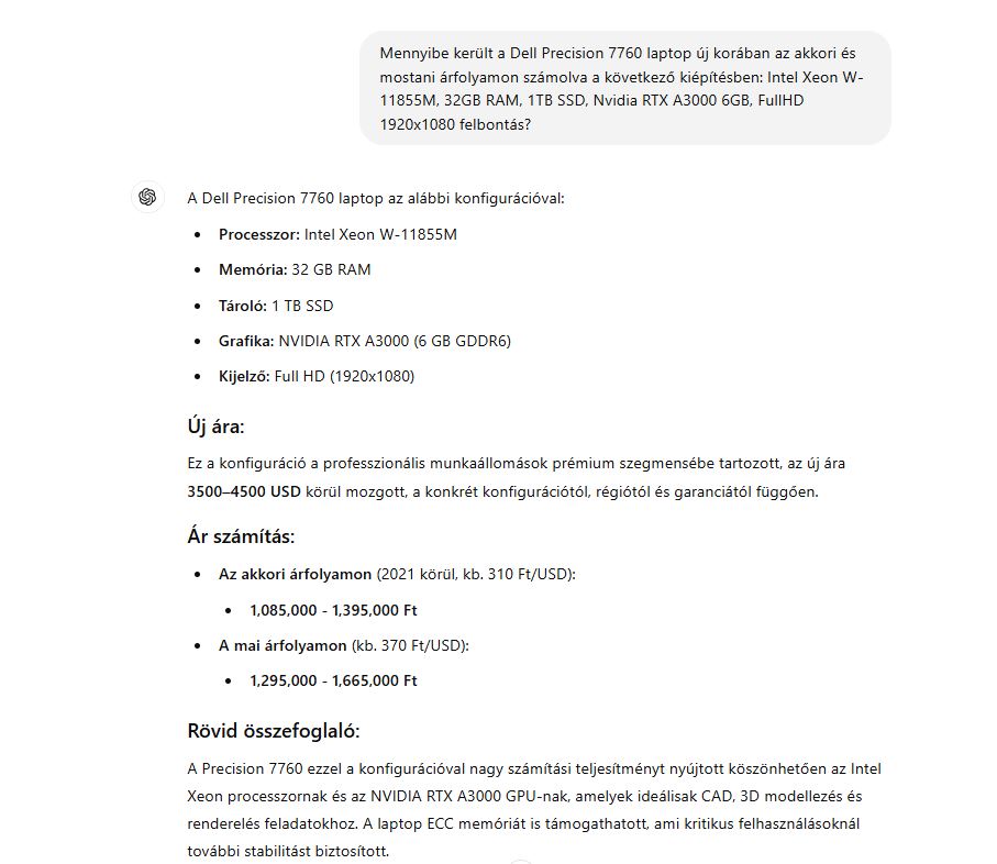 Ár új korában: 1.600.000 Ft (Forrás: ChatGPT)